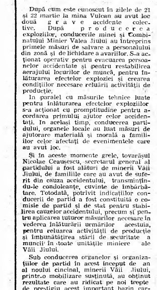 Acum despre presiunea finalizării anchetei și pornirea capacității de producție nu vorbesc vorbe. Așa se proceda. Erau cinici comuniștii. Uite, spre exemplu pe data de 26.03. are loc la Petroșani adunarea activului din mineritul Văii Jiului. Ia cuvântul și tov. Ilie Verdeț, ministrul minelor de la acea dată.