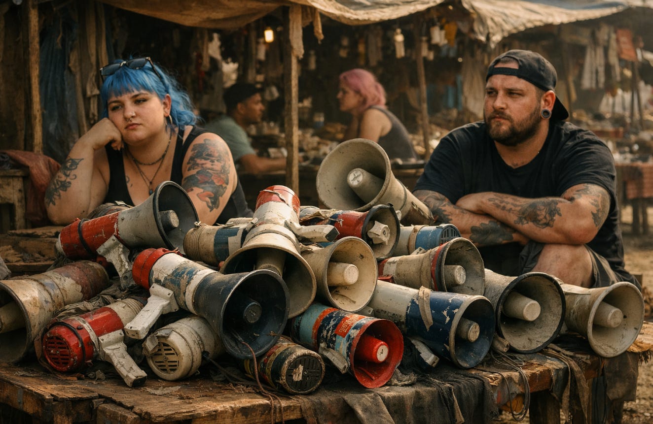 Este echivalentul intelectual al strigătului „Nu mă ascultă nimeni!” într-o cameră plină.